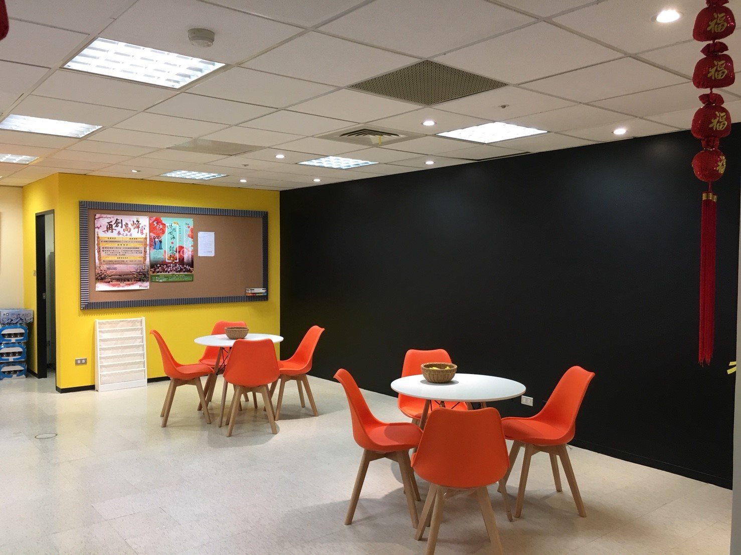 在洽談區,設計師選用的裝潢風格以黑色和黃色作為對比的跳色設計,這種設計可以增加空間的動態感和視覺效果。這種跳色的運用也讓洽談區更顯得活潑和熱鬧,使客戶在洽