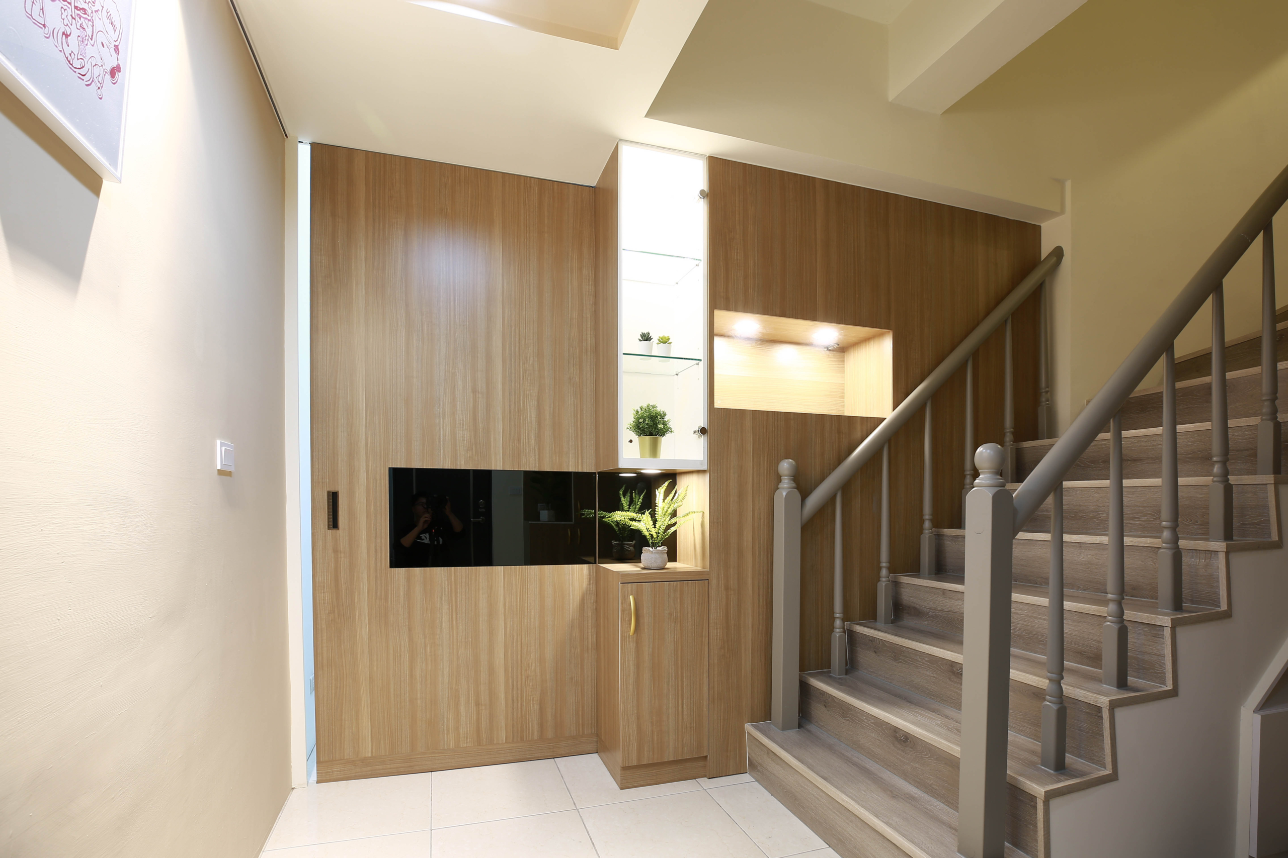 偏好現代感設計,並增加收納空間,同時改善老透天陳舊感,利用燈光及線條,呈現現代氛圍