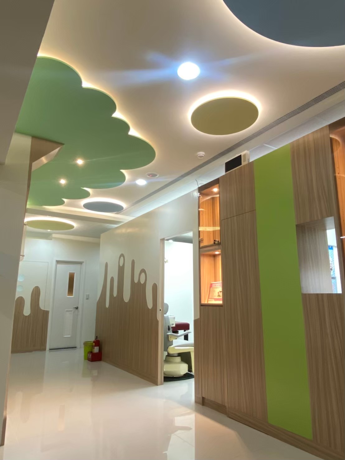 再來以圓弧質感室內設計線條,營造兒童喜愛的花朵、雲朵、城堡..等童話情境圖案,呈現活潑親切的開放式診間氛圍,將兒童視覺喜好與診間空間設計拉近,產生正向互動,贏得口碑。