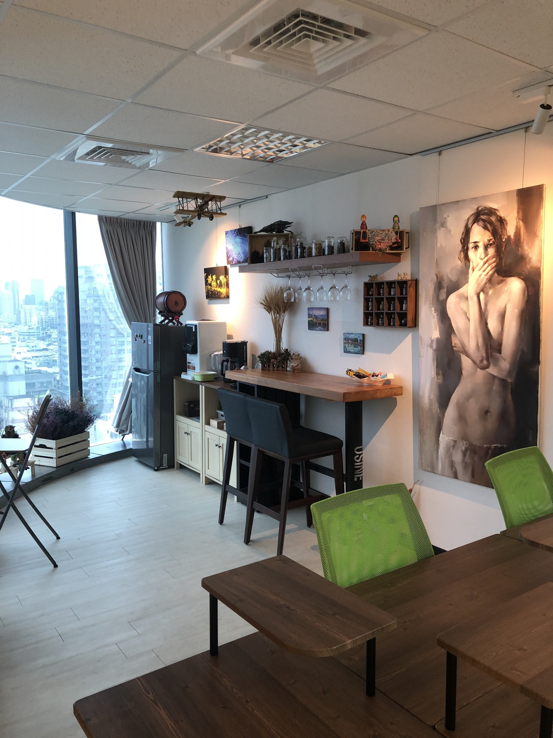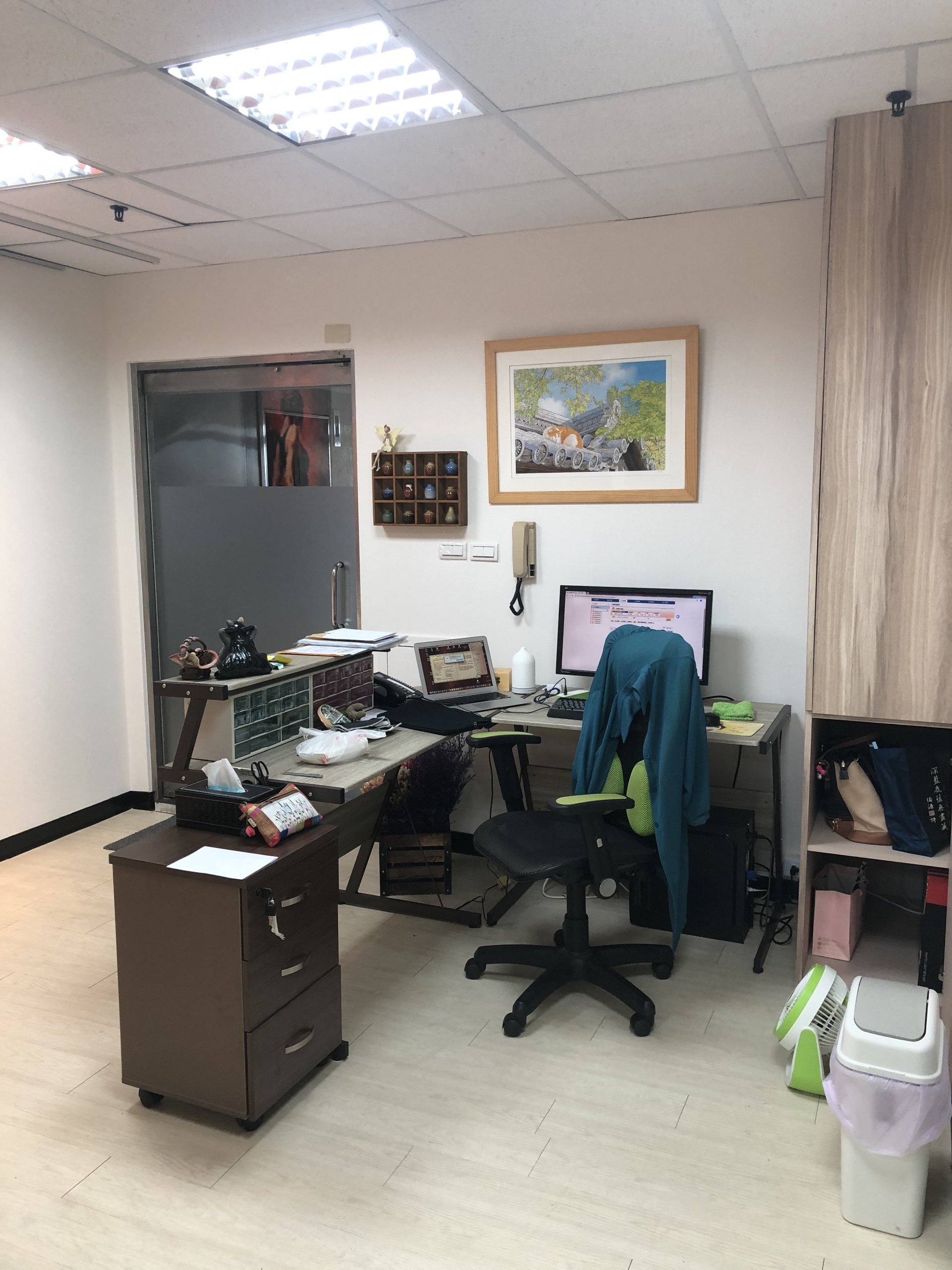 總體來說,這個室內裝修設計的小型個人辦公室以簡潔、自然和舒適的氛圍為主題,運用屋主喜愛的綠色作為牆面跳色,營造出一種自然、清新和富有活力的